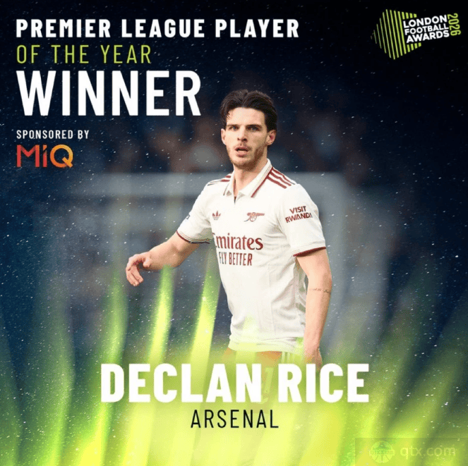 阿森纳赖斯荣获英超最佳球员,阿尔特塔获最佳主帅称号。